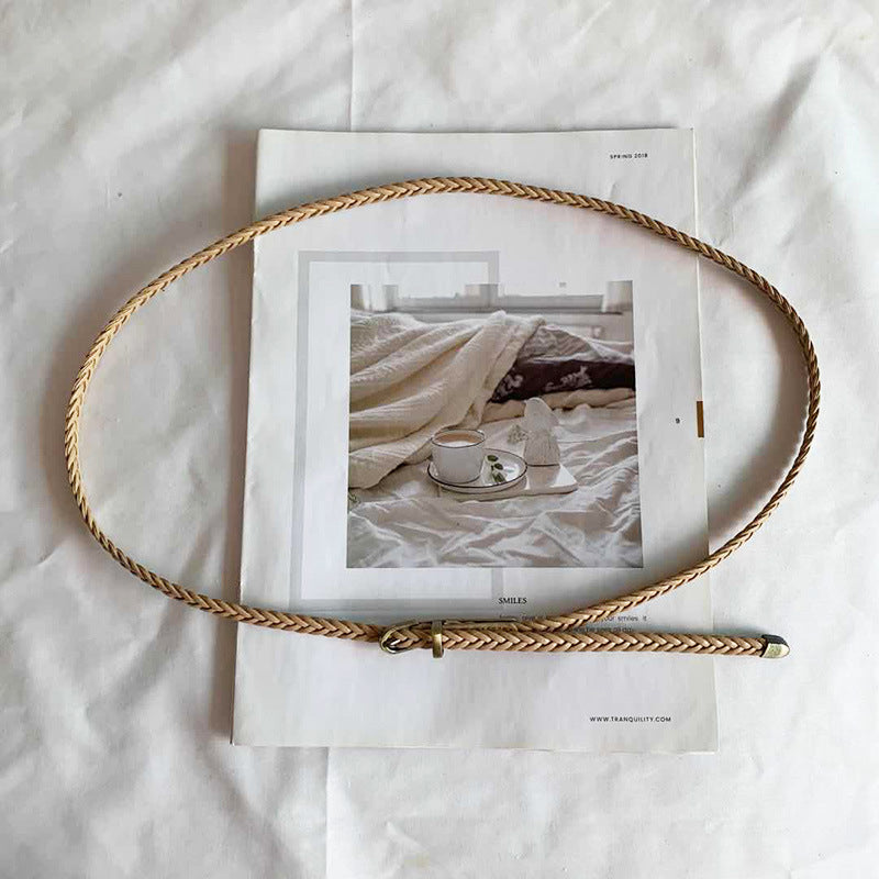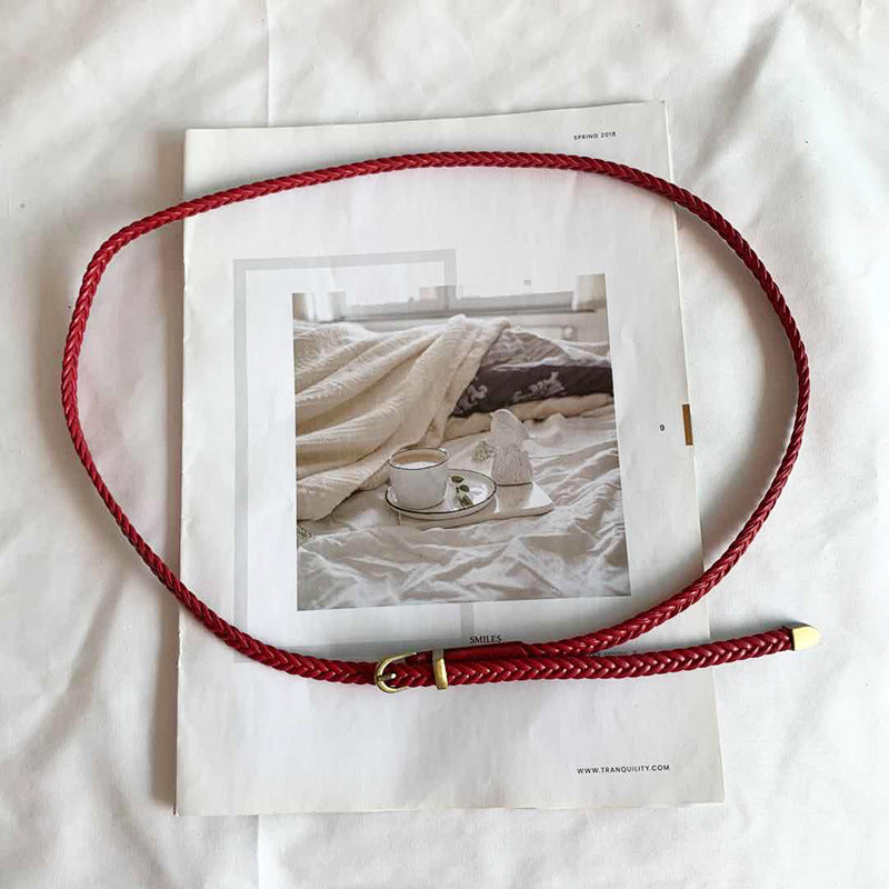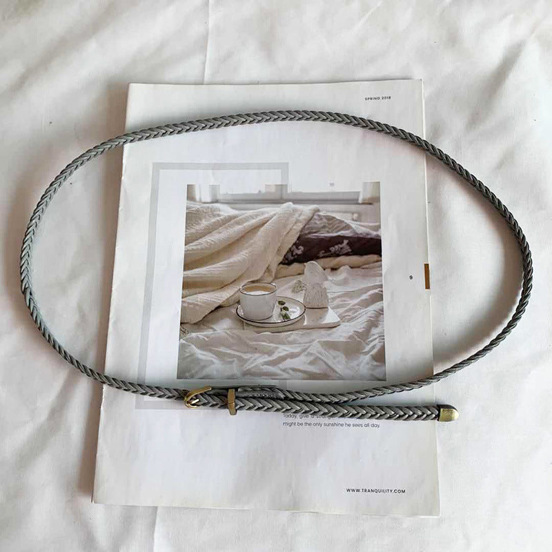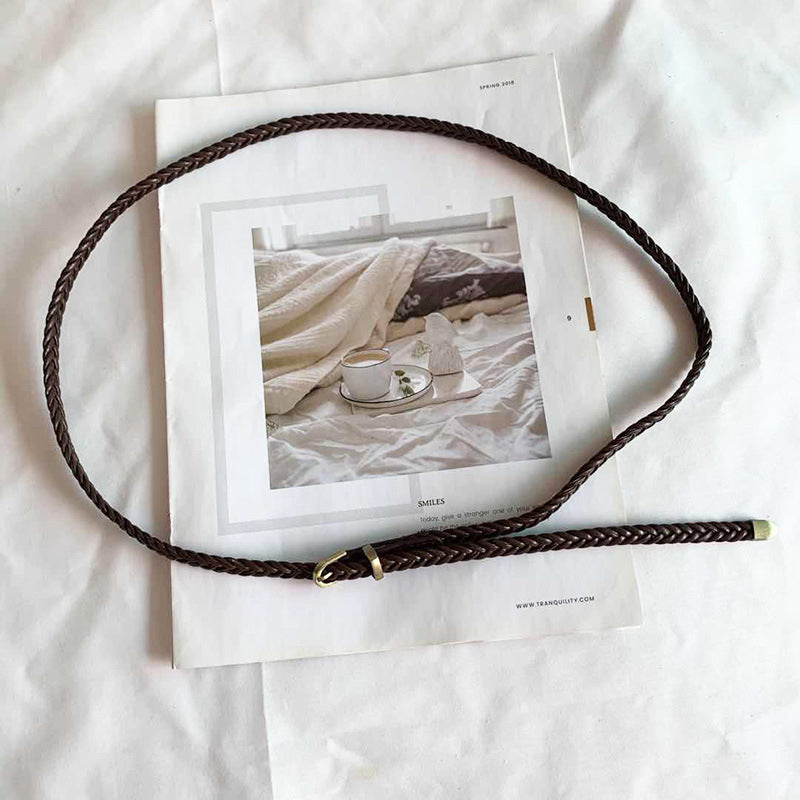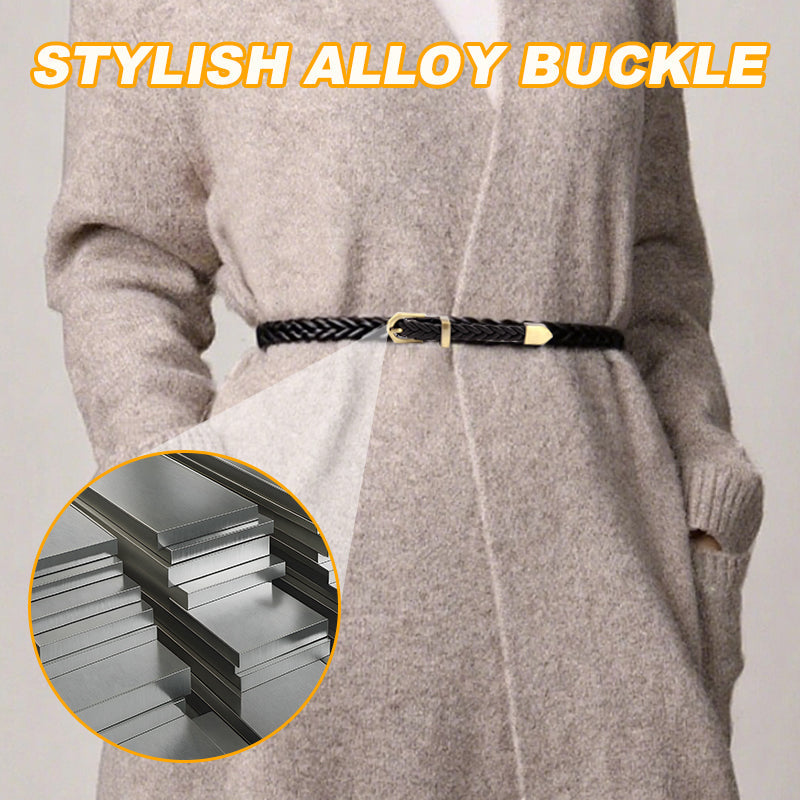 Damski pasek z plecioną skórą PU i klamrą ze stopu metali